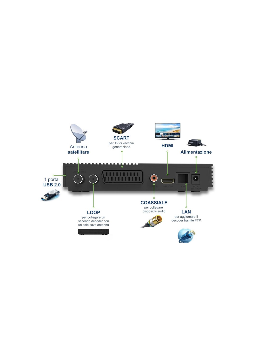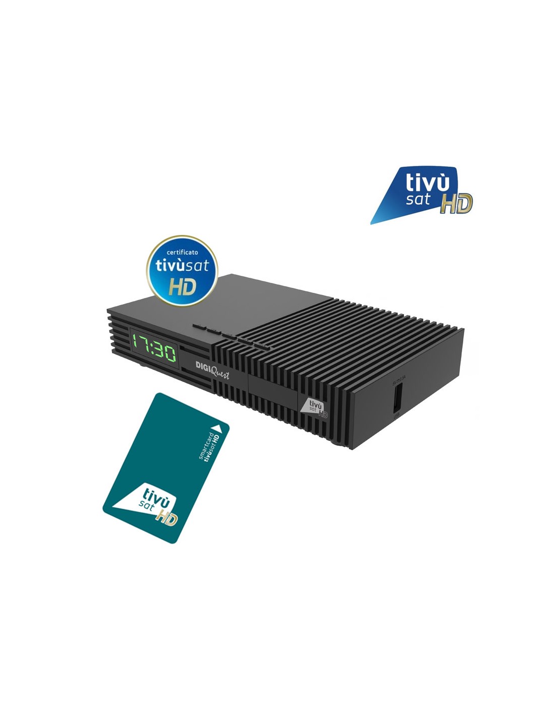 Es un decodificador certificado tivùsat HD con tarjeta inteligente oficial que permite acceder a los canales italianos de la TDT por satélite a través de HotBird 13°E. Destaca por ser un receptor certificado que garantiza el acceso a los canales oficiales tivùsat en HD con la smartcard oficial.